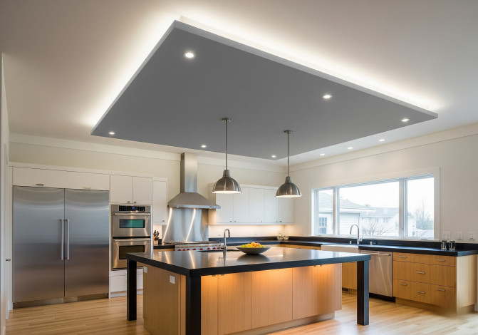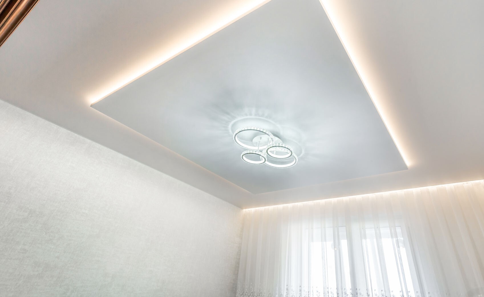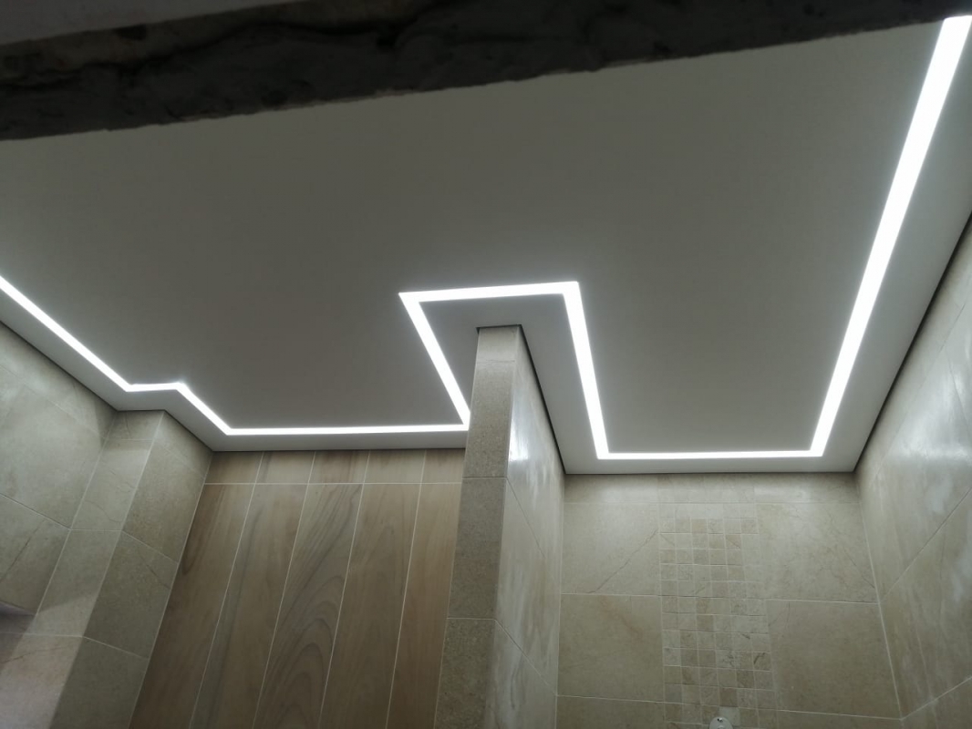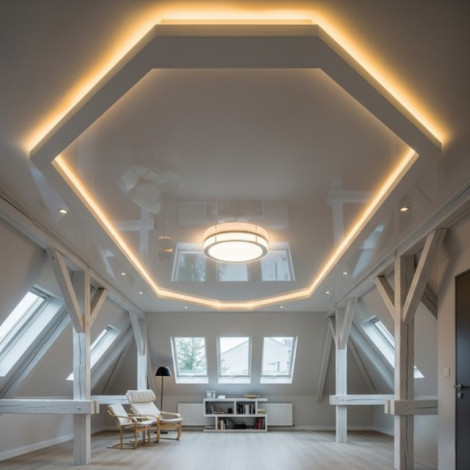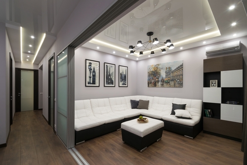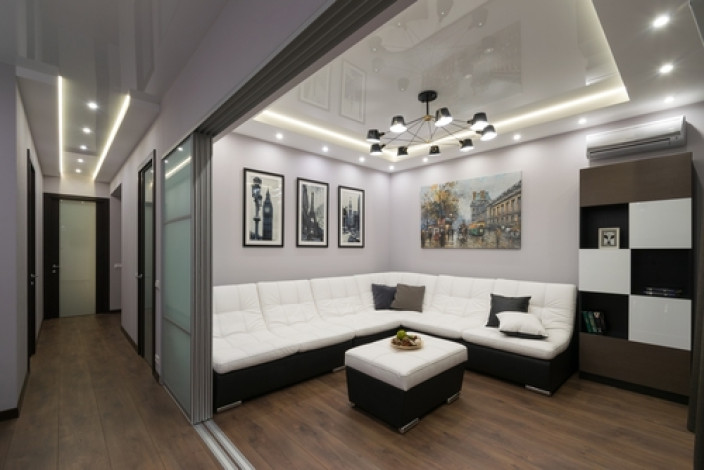 Если нужно добиться визуального эффекта расширения пространства, создать его помогут специальные зеркальные потолки или скрытая подсветка, что зрительно увеличит высоту стен. Помещение смотрится объемным.