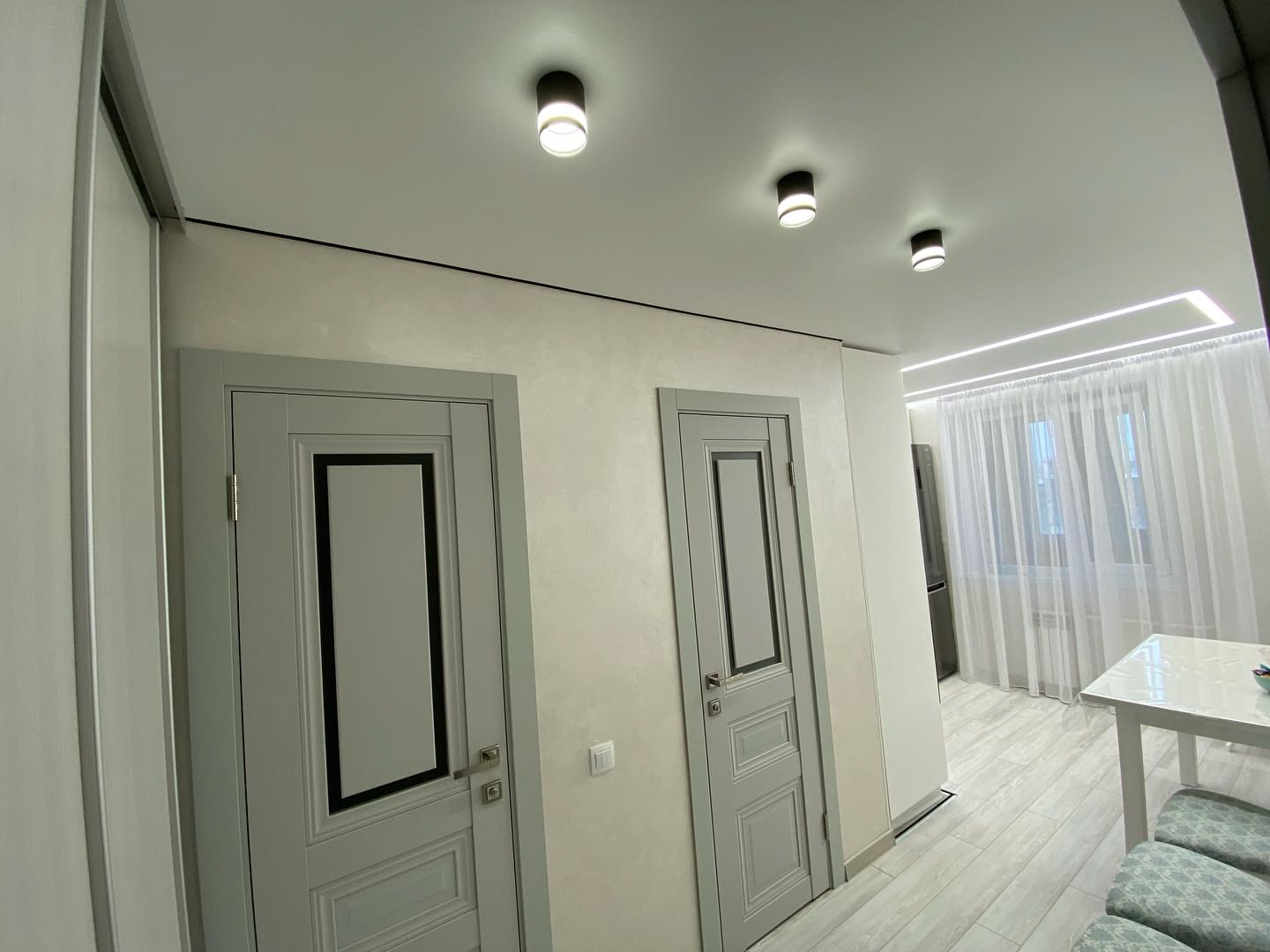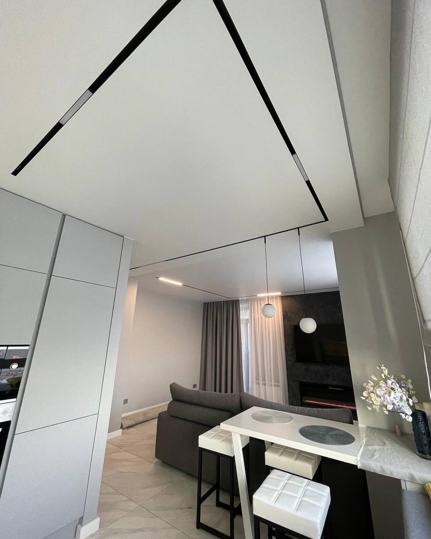 Есть противопожарные потолки Teqtum, которые часто используются в отделке общественных помещений. У них очень серьезные характеристики безопасности, соответствующие параметру КМ2, благодаря которому полотно устанавливается в торговых центрах, лобби отелей и т.д.